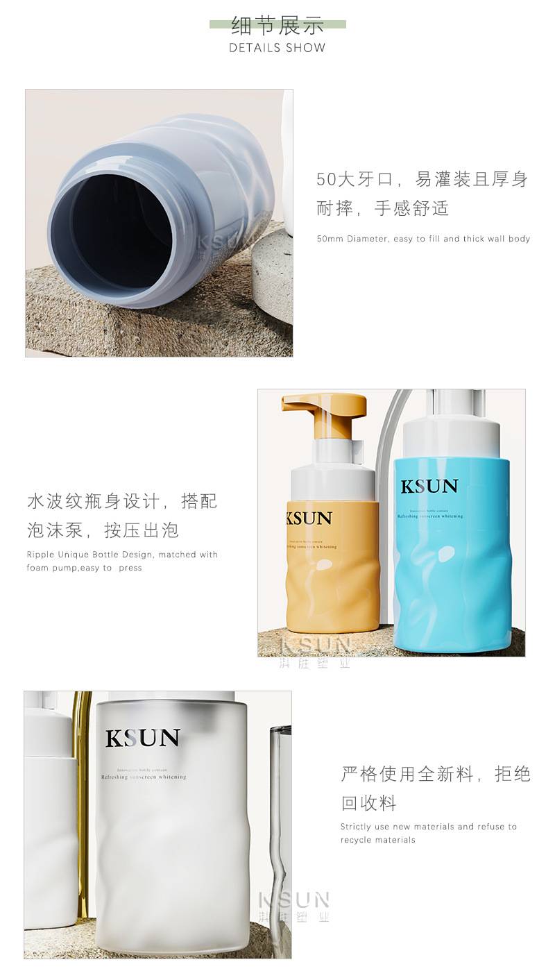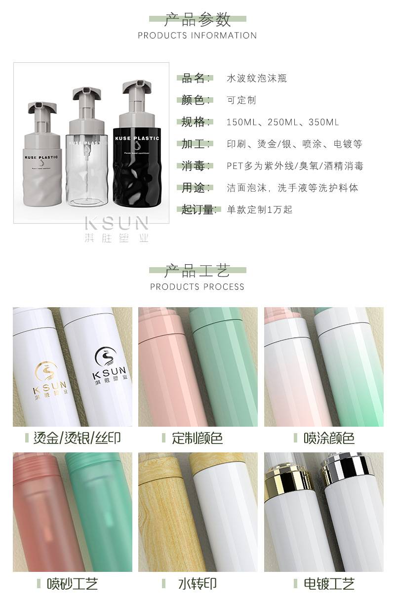 PET水波纹洗面奶按压起泡瓶 300ml洁面洗护洗手液慕斯泡沫瓶