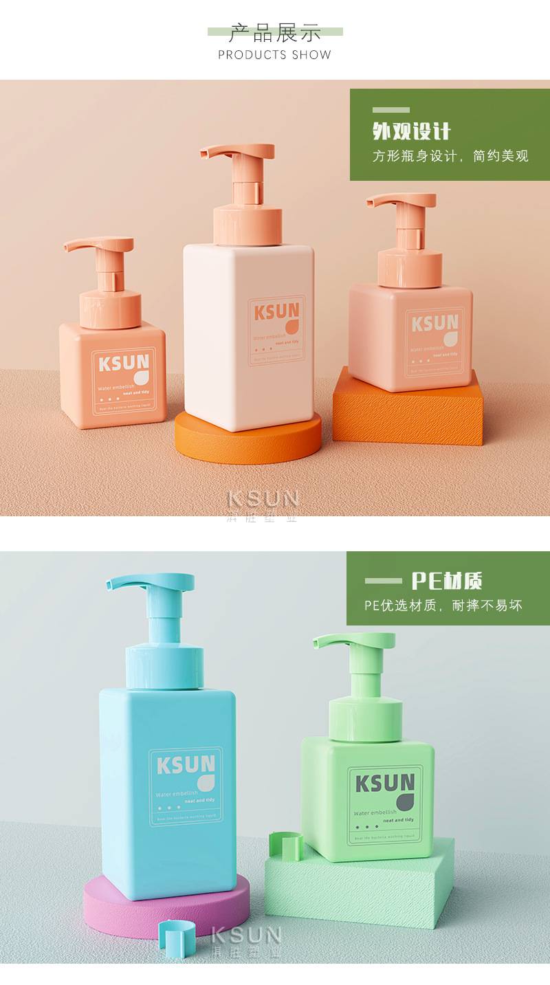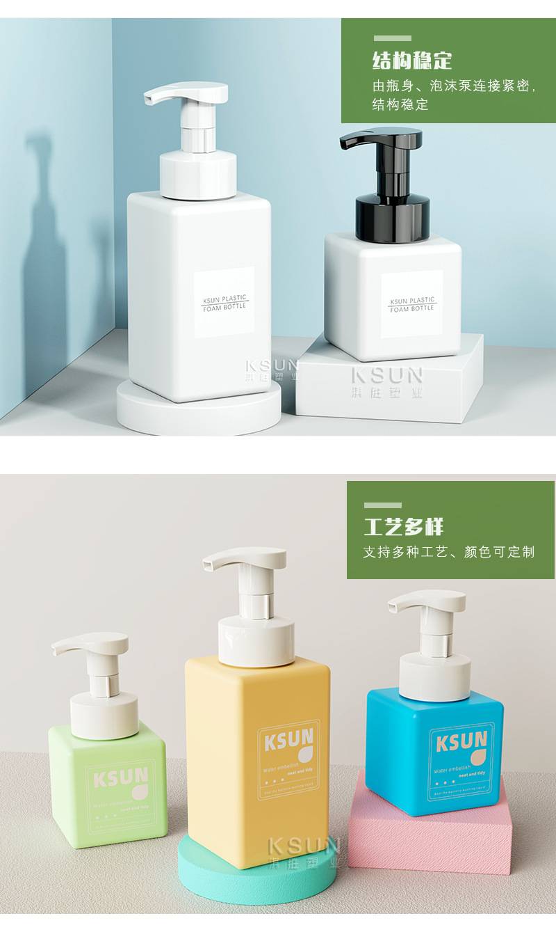 PE定制洗护包材儿童450ml方形洁面慕斯泡沫瓶250ml带夹洗面起泡瓶