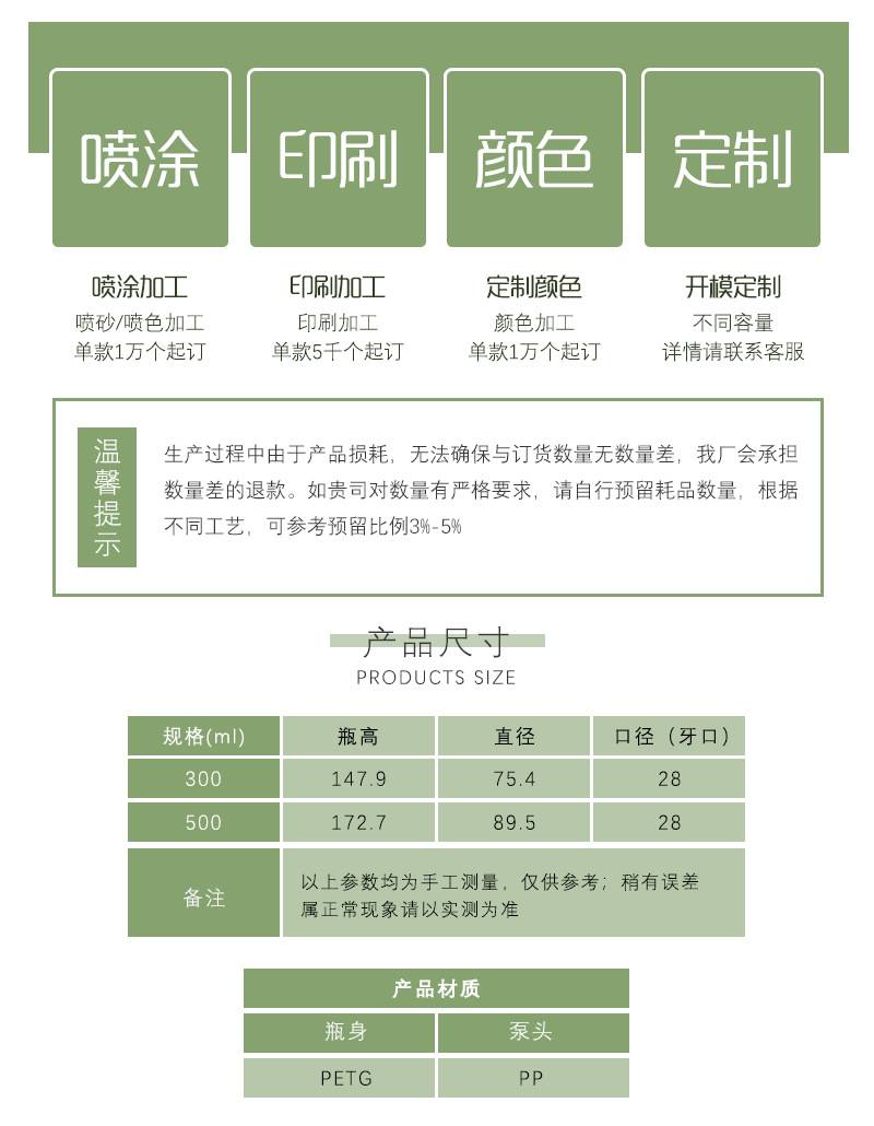 PETG厚壁洗护瓶500ml按压乳液洁面泡沫瓶 300ml洗面奶起泡瓶