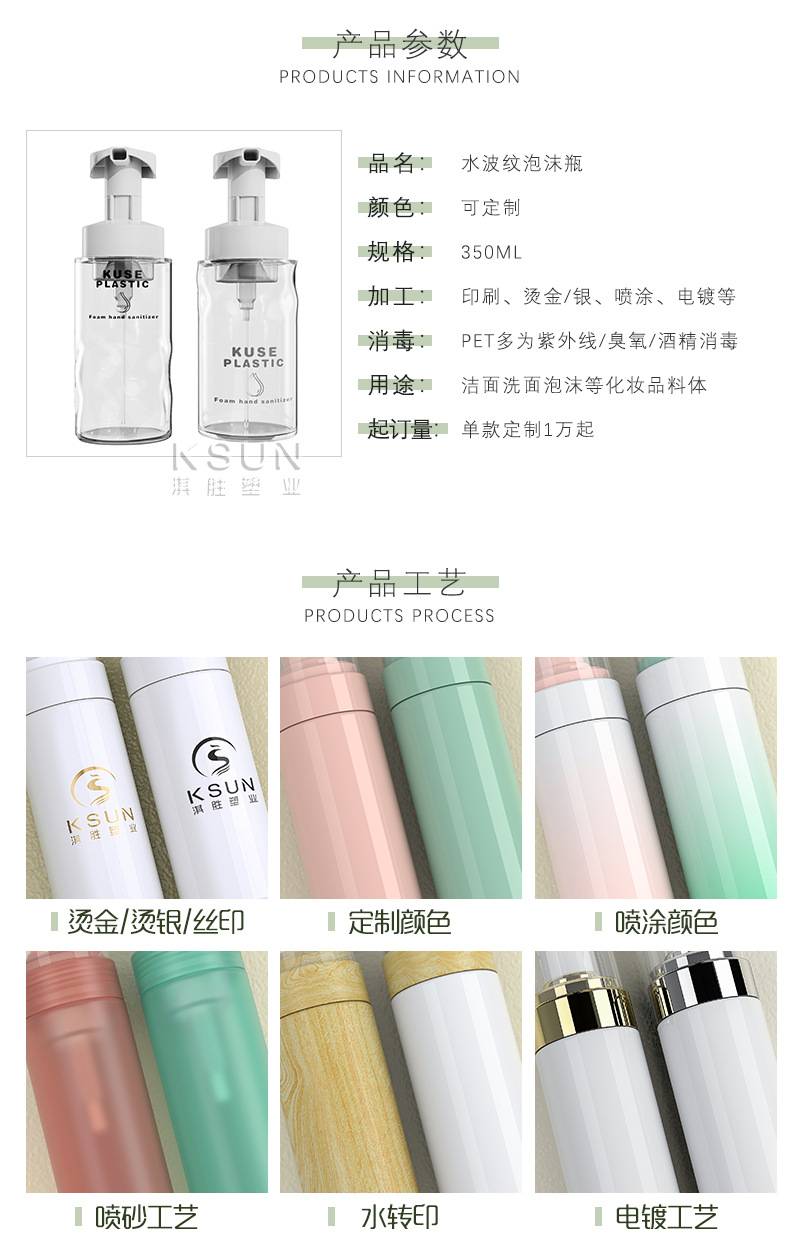 PET水波纹型洗面奶按压泡沫瓶 350ml洁面起泡瓶洗手液慕斯瓶