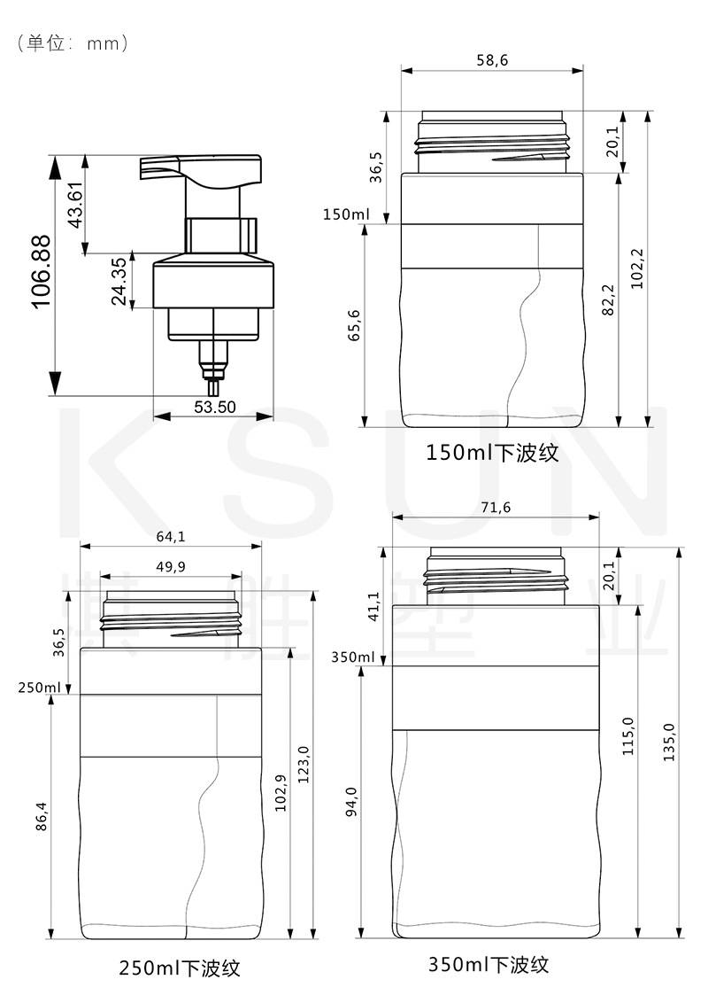PET250ml水波纹形50大牙口洗手液起泡瓶 350ml洁面慕斯泡沫瓶