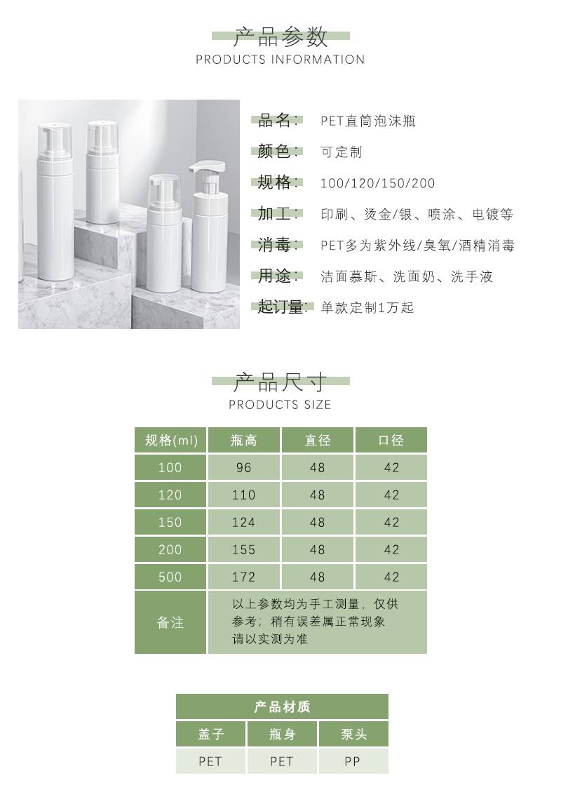 洁面泡沫瓶PET塑料化妆品瓶 按压洗面奶慕斯起泡瓶