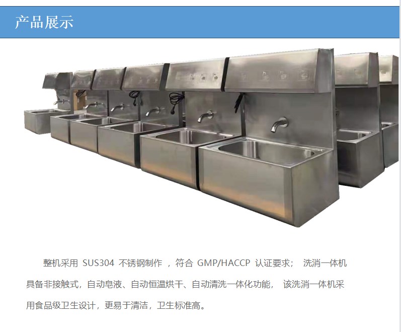 洗消一体机壁挂式 食品厂用感应水龙头皂液消毒烘干 双水槽设计