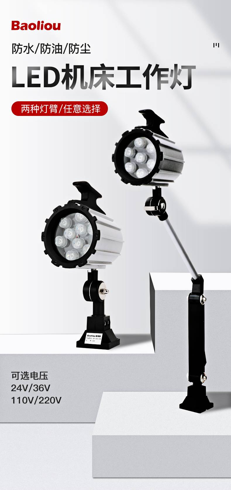 LED机床工作灯24V36V110V220数控车冲铣磨床台灯机械设备照明灯具