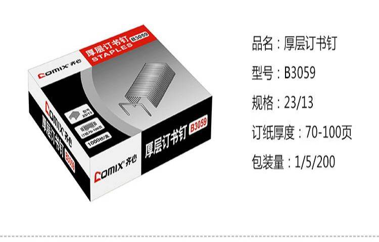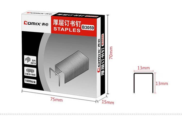 齐心(COMIX) 办公文具订书钉100页 订书针1000枚/纸盒 重型B3059