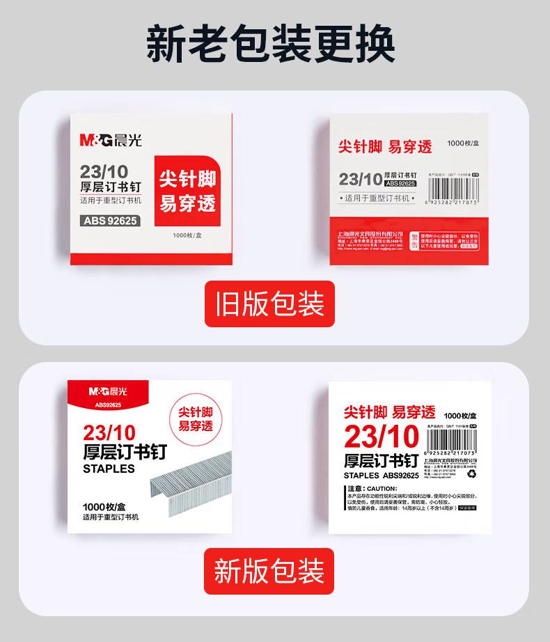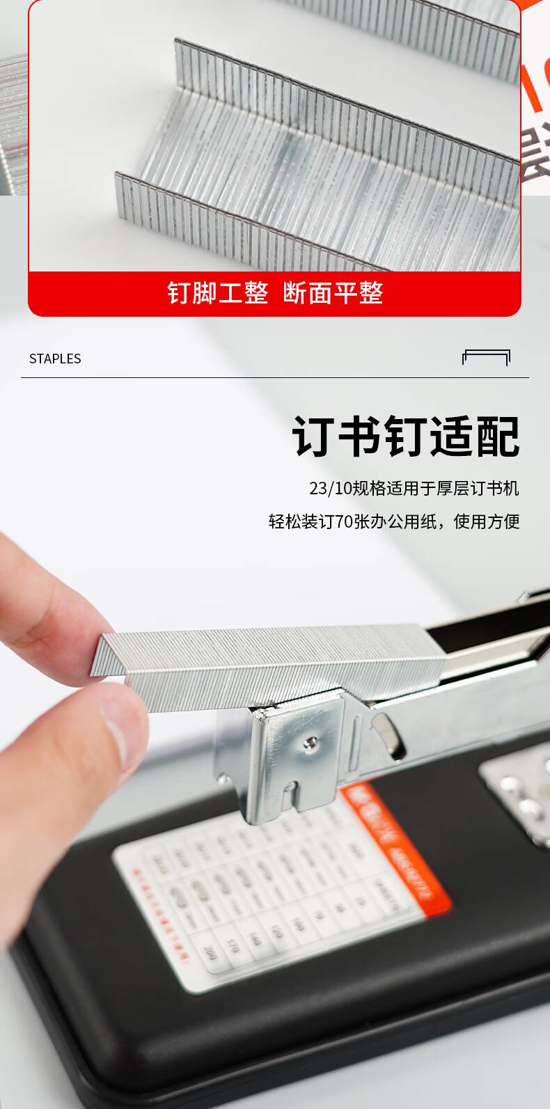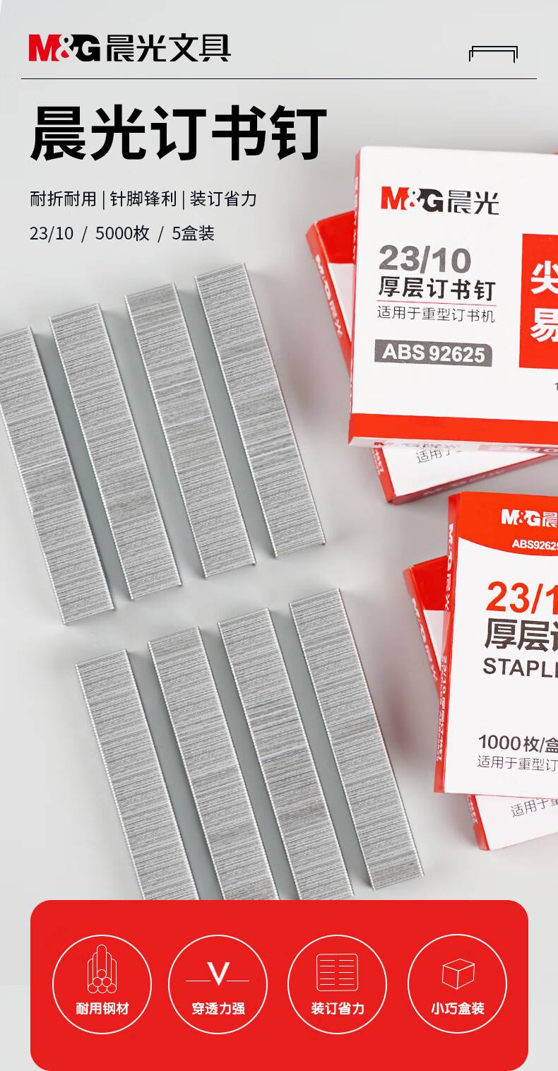 晨光厚层订书钉 23/10号重型易穿透订书针 1000枚/盒 5盒装ABS92625