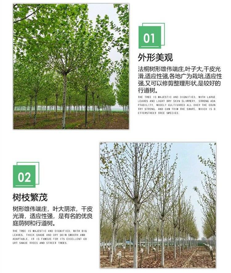 工程行道绿化 全冠15/18公分速生法桐 规格齐全 截枝发冒 树形美