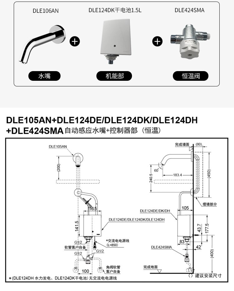 TOTO感应水龙头DLE105AN单冷水家用卫生间入墙式台盆龙头酒店工程