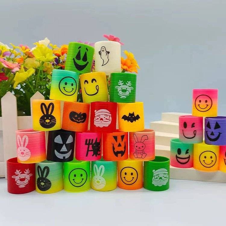 迷你笑脸彩虹圈3.0X3.5CM地摊儿童玩具80后怀旧七彩圈益智弹力圈