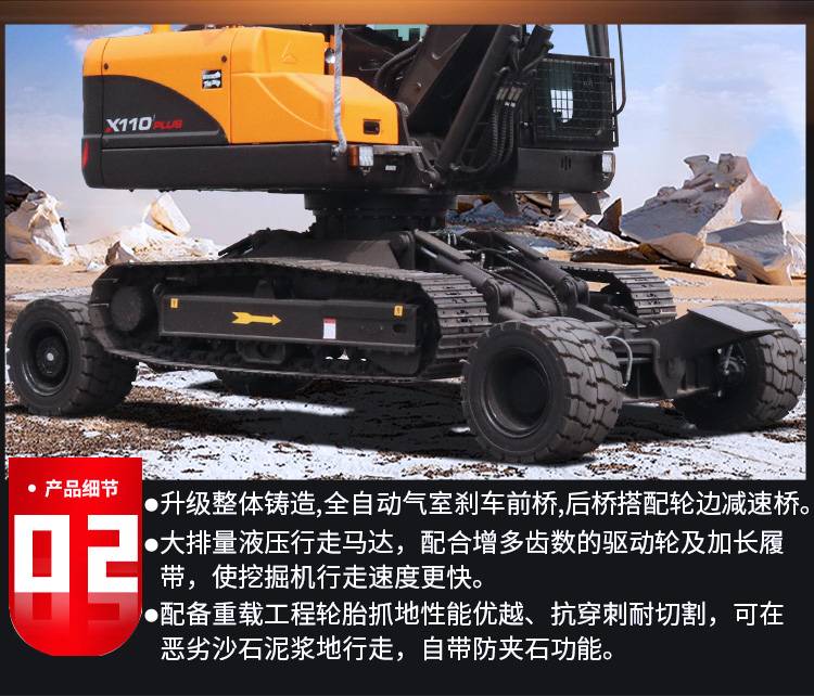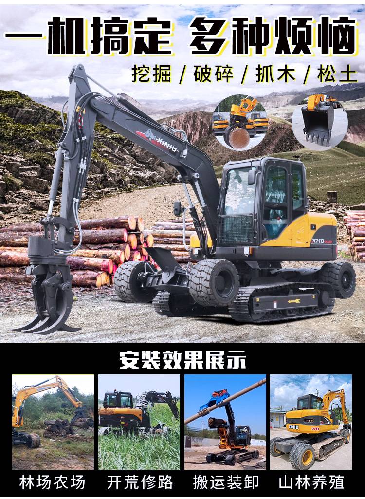 小型道路建设轮履式110挖机 加厚履带抓木机 工程破碎挖掘机