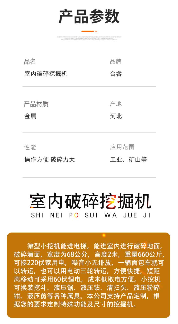 合睿 室内破碎挖掘机 能进电梯小挖机 厂家发货