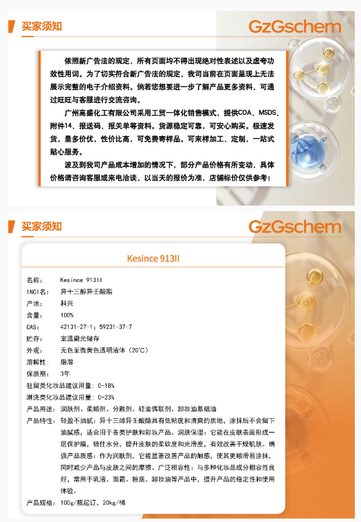 科兴 Kesince 913II 卸妆油基础油 异十三醇异壬酸酯 100g起订
