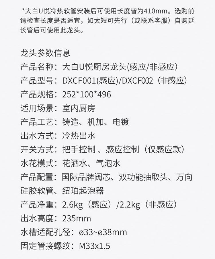 大白卫浴U悦厨房冷热水龙头 防溅感应抽拉式 洗菜洗手盆家用