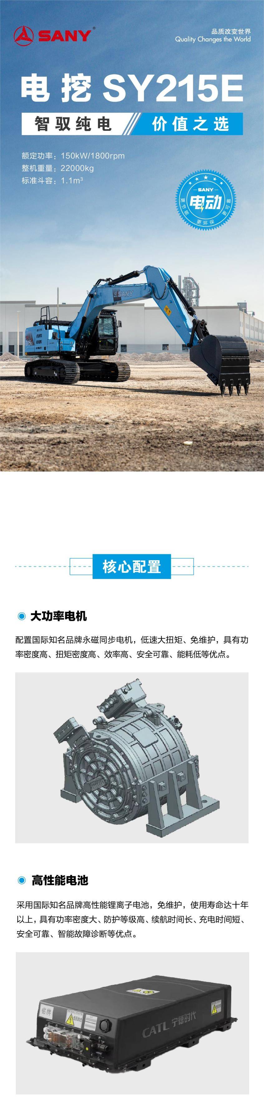 三一中型电动挖掘机 土石方机械 SY215E 斗容 1.1m³ 大功率电机 电池好