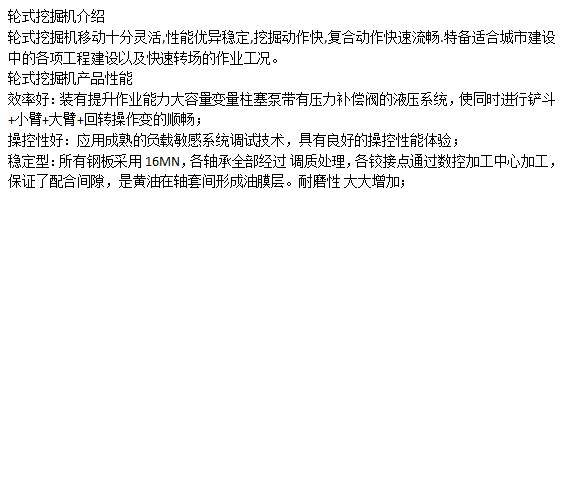 轮式挖掘机 性能稳定 动作快 操作方便 移动灵活