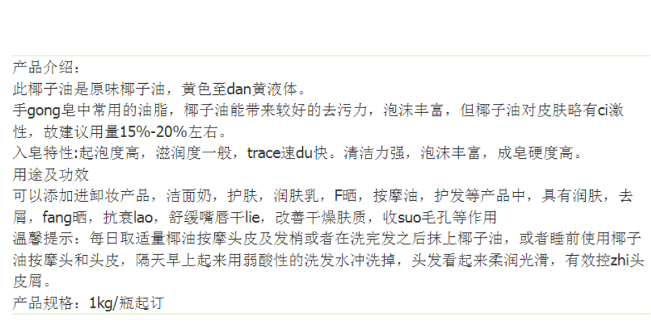 原香原味椰子油 卸妆乳 护发素 手工皂 护肤 化妆品原料 1kg