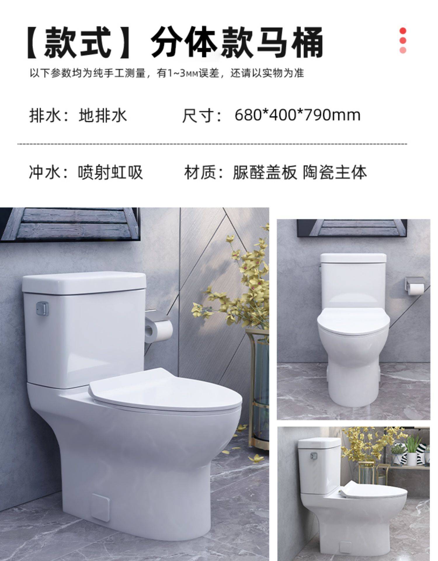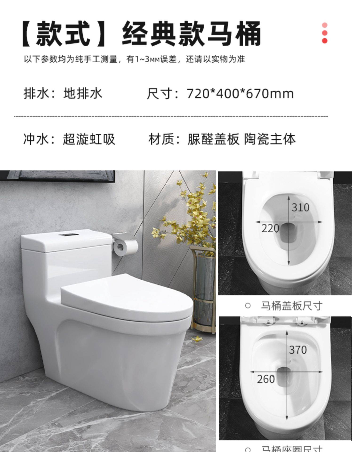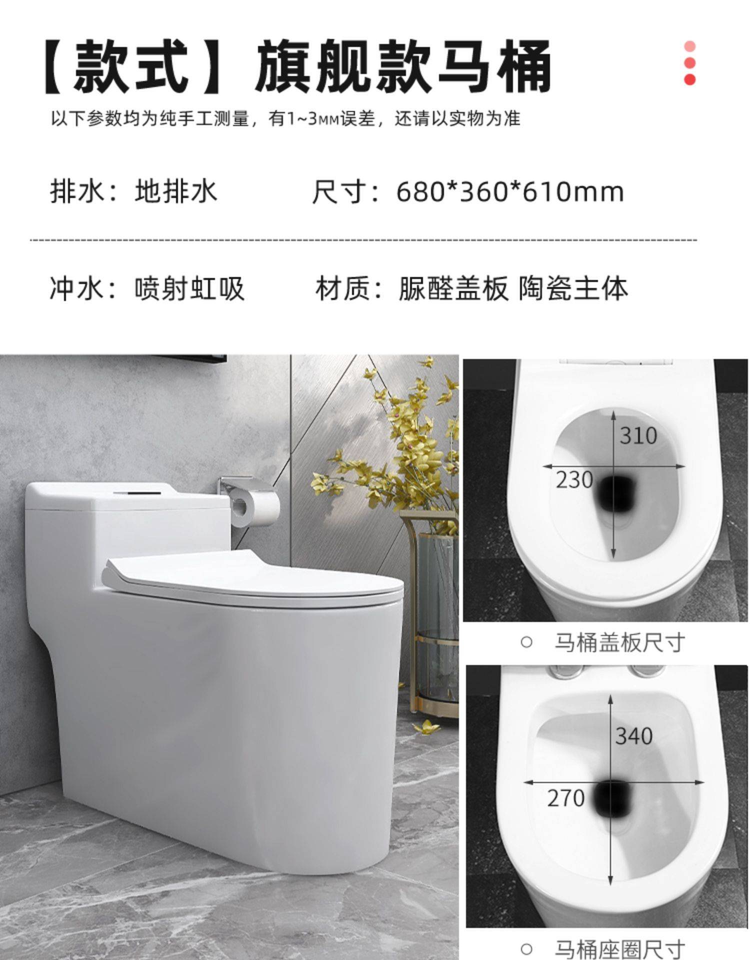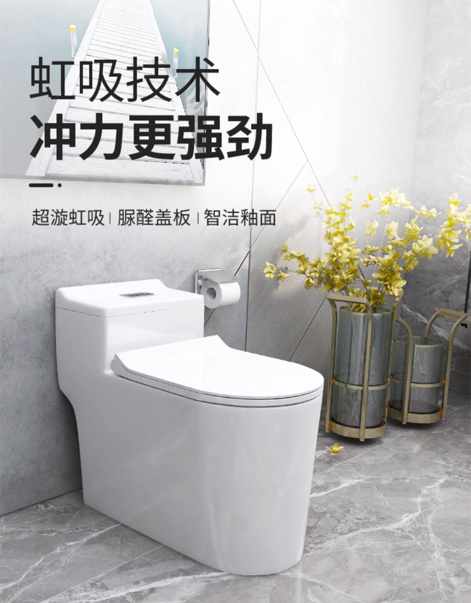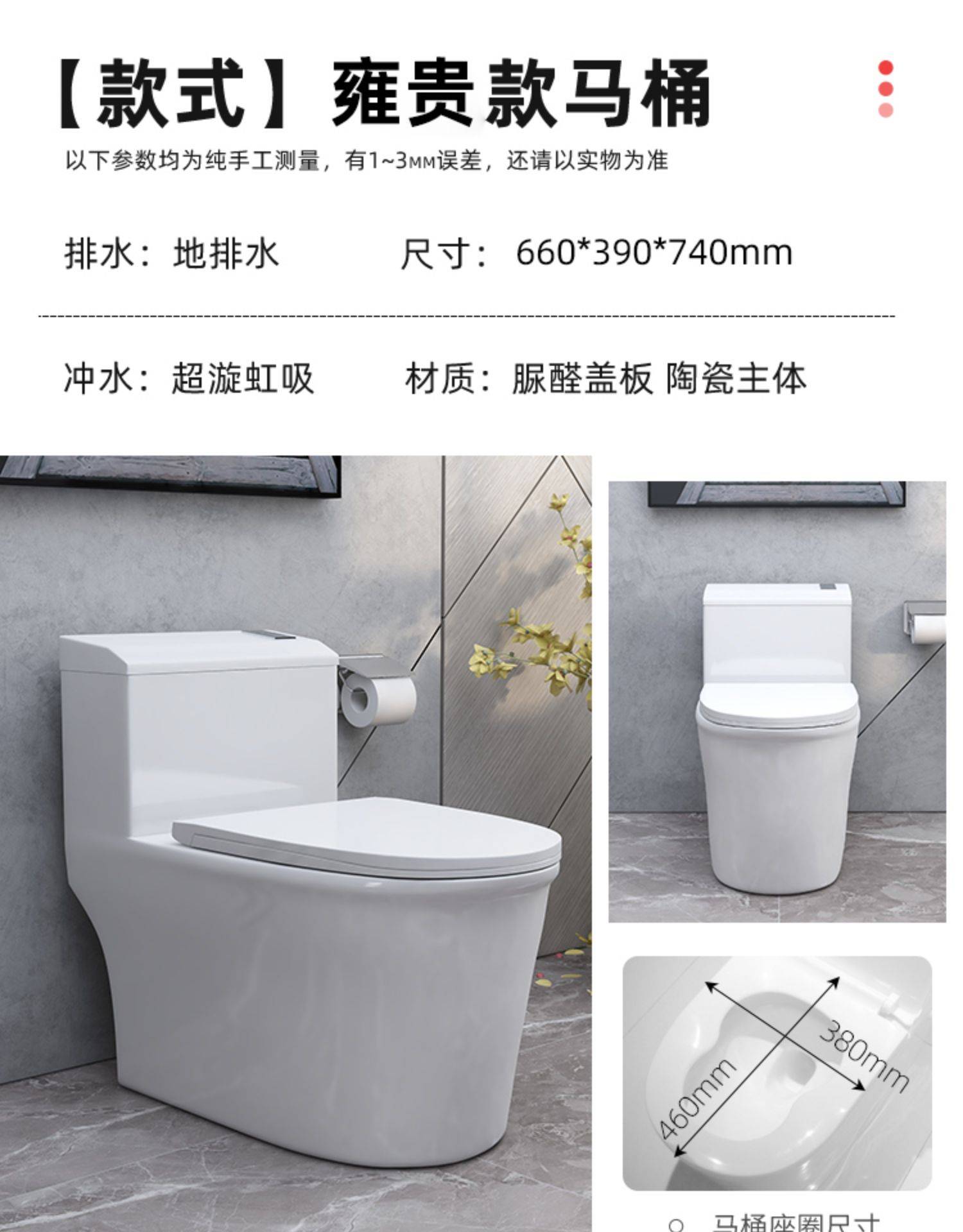 家用抽水马桶卫浴坐便器小户型静音防臭直冲坐厕节水虹吸式座便器