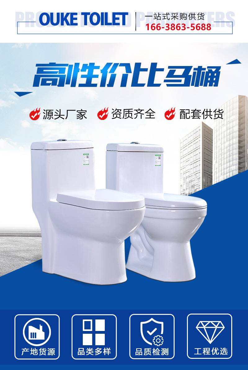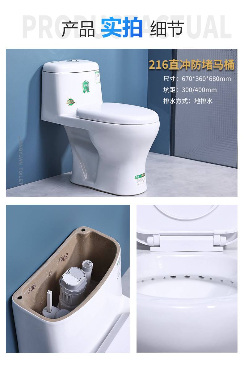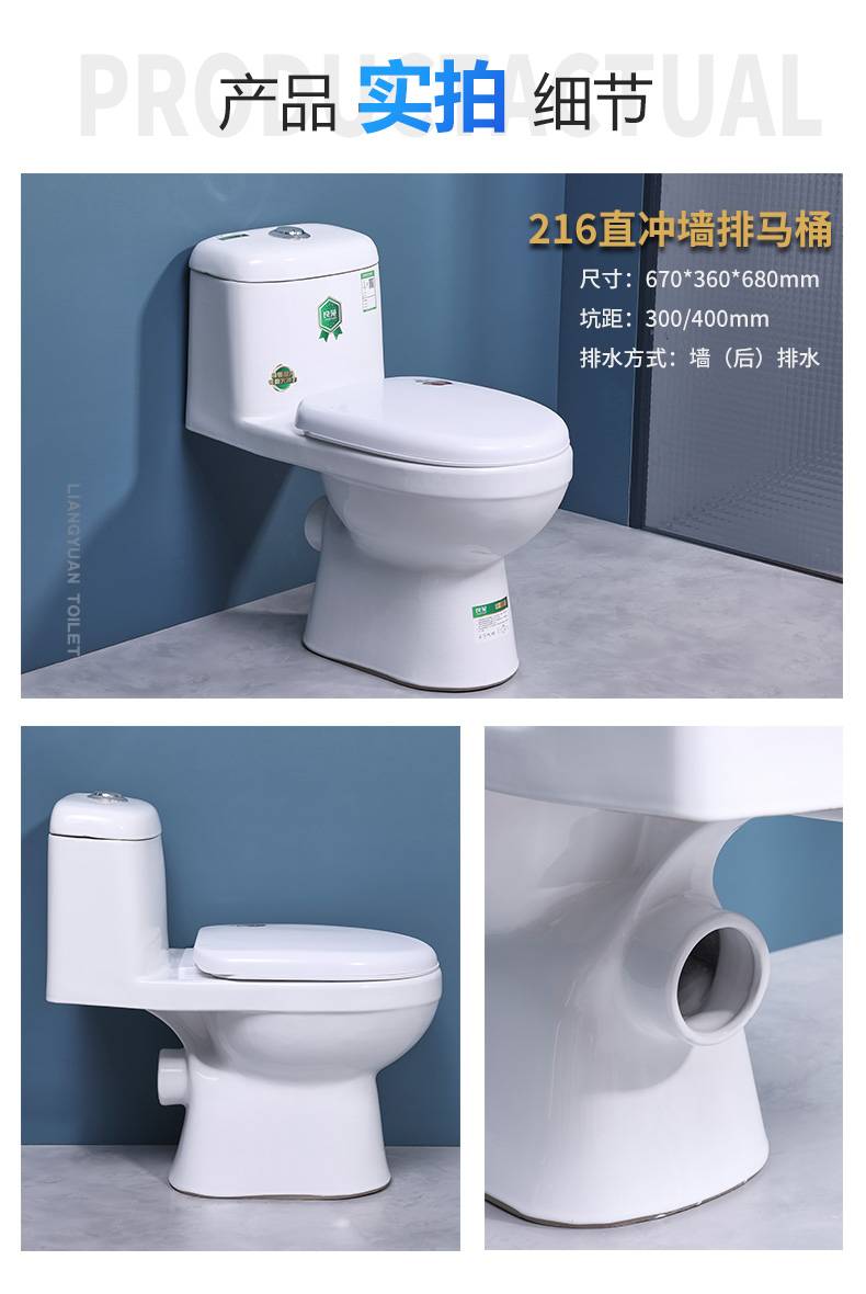 连体抽水马桶 大管道 卫生间陶瓷直冲式坐便器 河 南实体工厂批发 良苑
