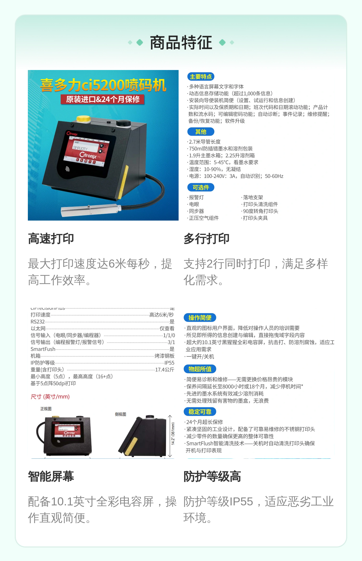 进口多米诺喜多力Ci5200小字符喷码机食品生产日期点状字符打码机