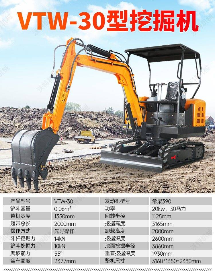 小型钩机30型加长臂挖掘机工程用柴油驱动小挖机