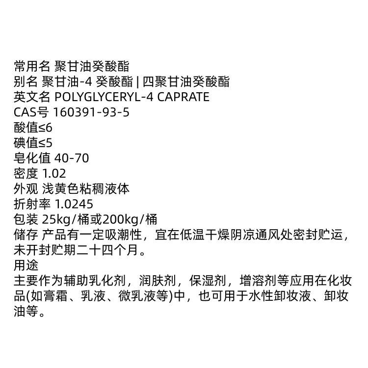聚甘油癸酸酯 160391-93-5 四聚甘油癸酸酯 水性卸妆液