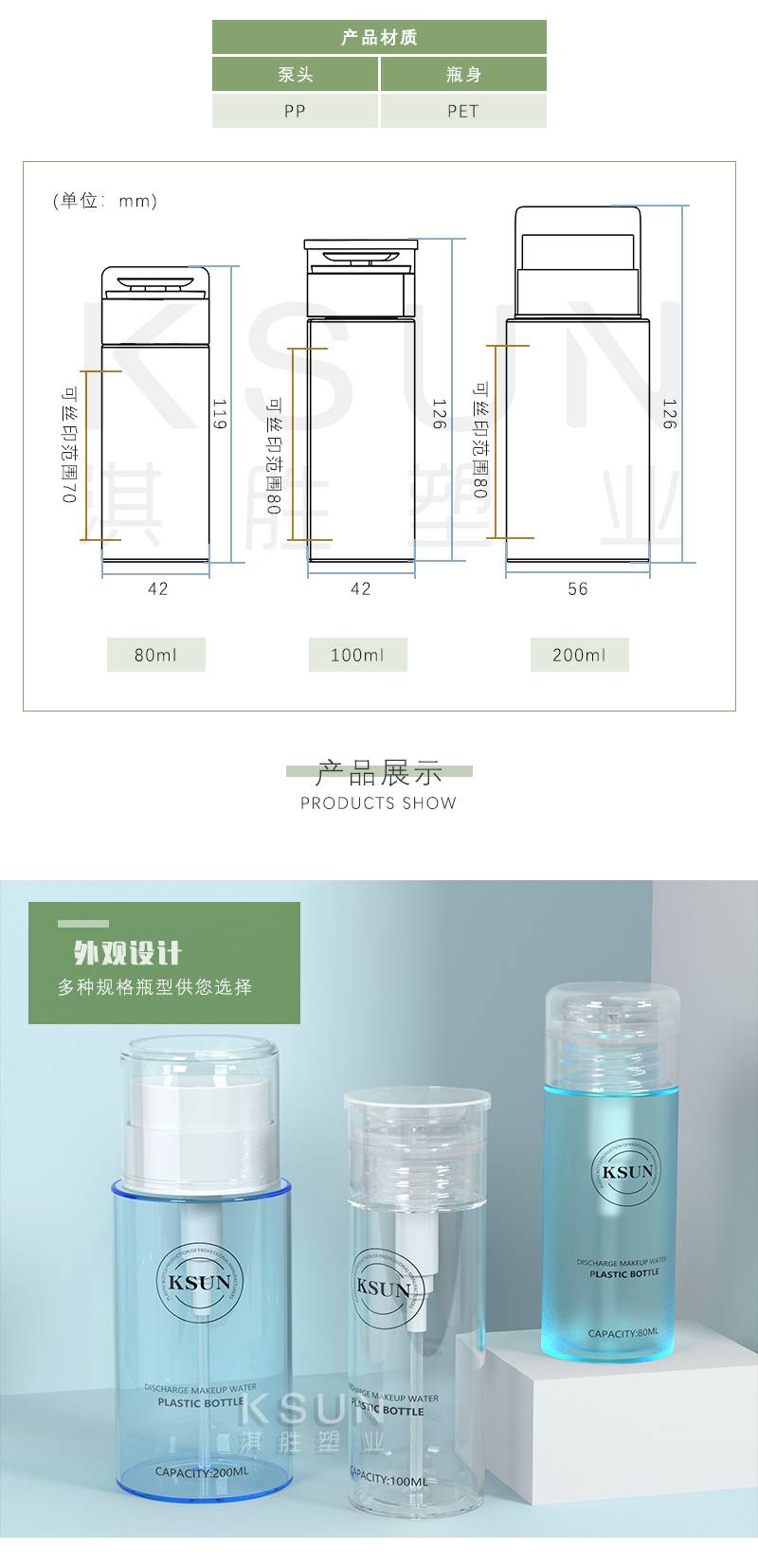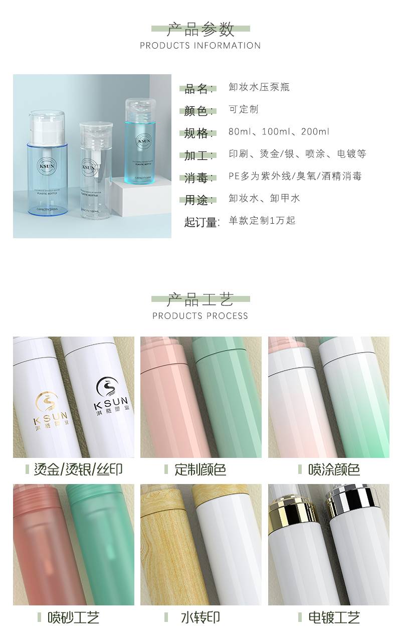 PET200ml卸甲水按压泵 卸甲油泵洗甲水瓶500ml卸妆水瓶