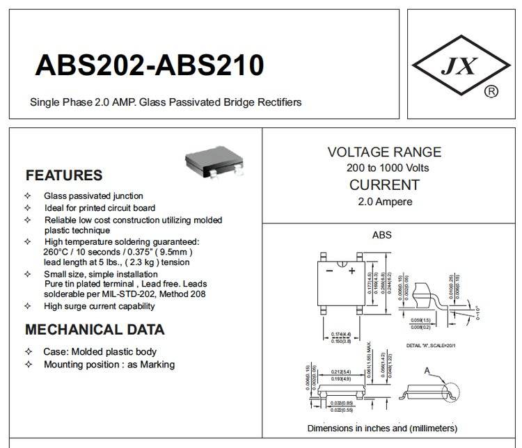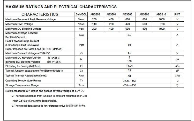 金鑫电子ABS210-2A/1000V-二极管桥式整流器