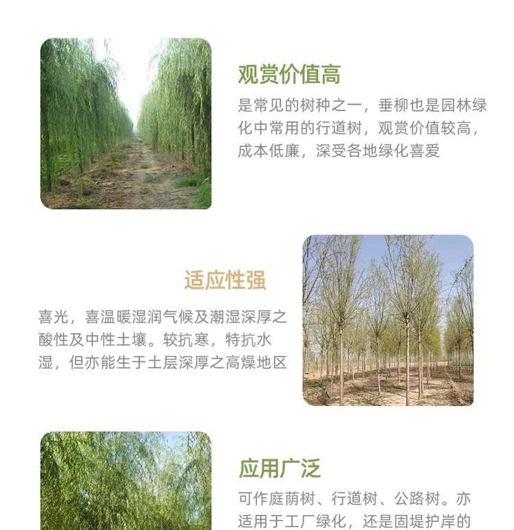 基地供应 12公分垂柳树 风景行道树青柳树园林绿化景观树批发