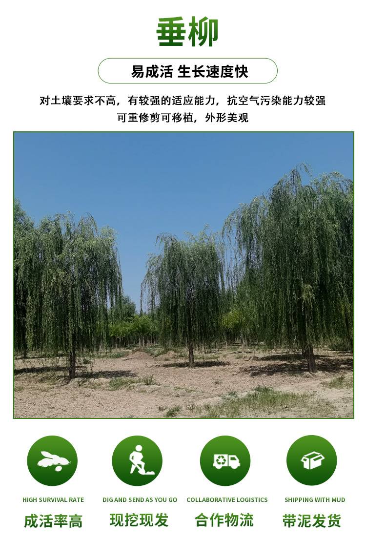15公分金丝垂柳 河边庭荫青皮垂柳树 露地栽培