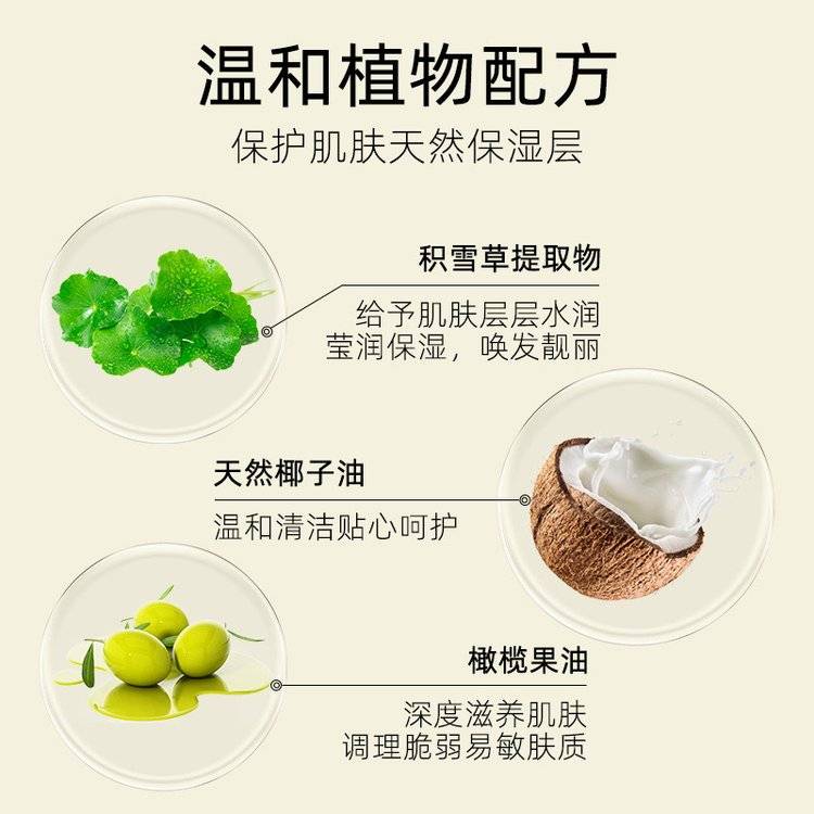 细滑水润质地,温和植物配方,易清洗