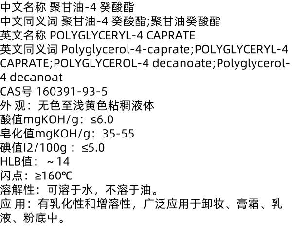 四聚甘油癸酸酯 160391-93-5 有乳化性和增溶性 用于卸妆 膏霜 乳液