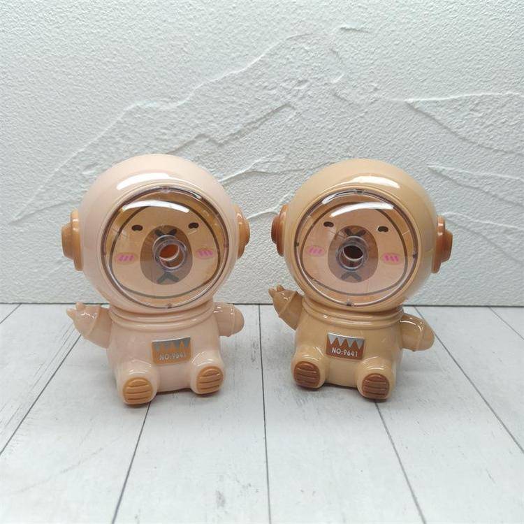 外贸卡皮巴拉削笔器宇航员水豚自动进笔3档可调粗细削笔机卷笔刀