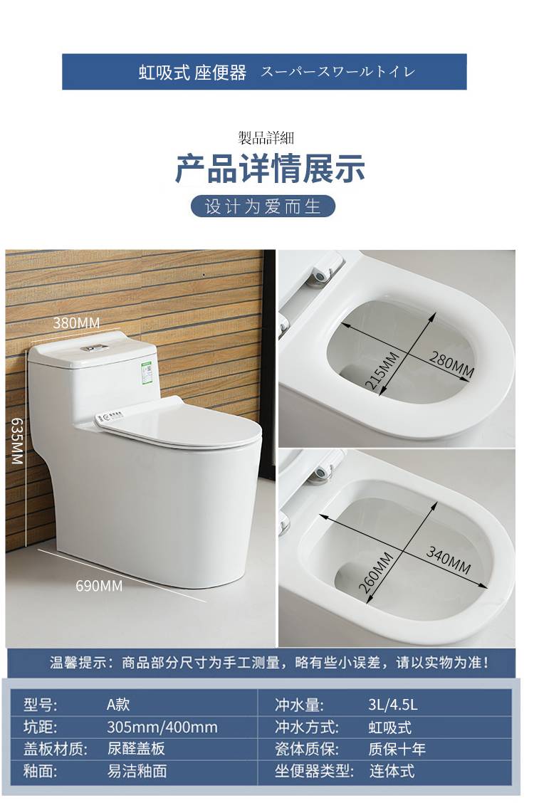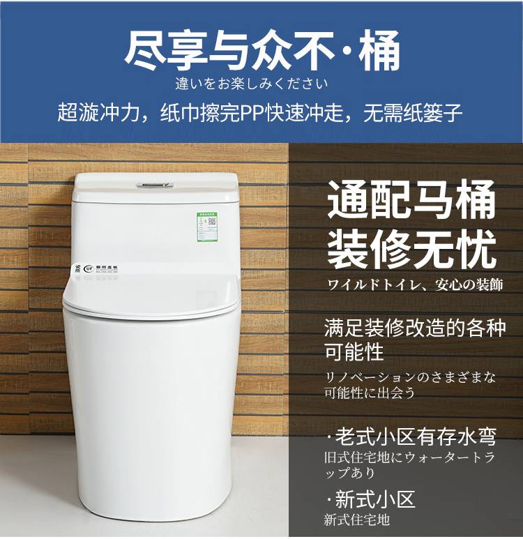 鹰牌马桶卫浴坐便器家用抽水大口径防臭节水喷射虹吸式座便坐厕