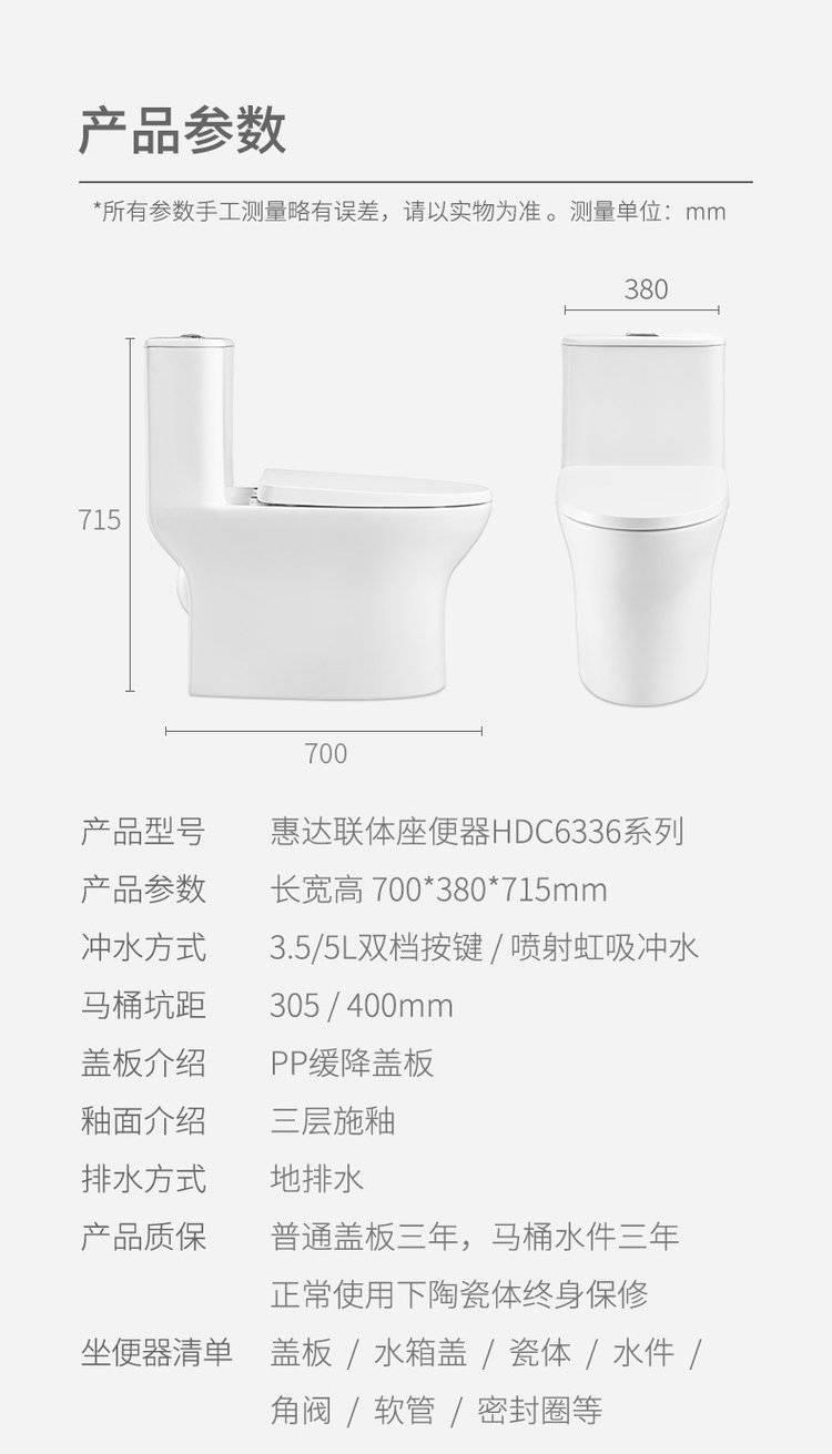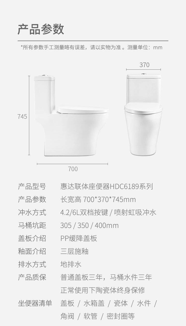 惠达卫浴6189喷射虹吸式小户型卫生间陶瓷经典马桶连体坐便器家用