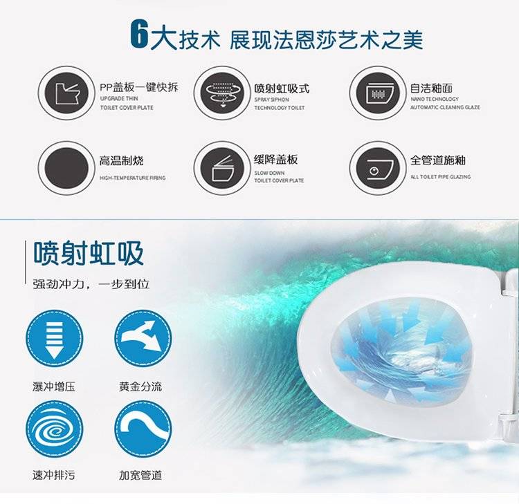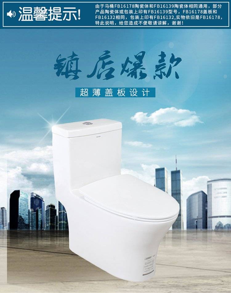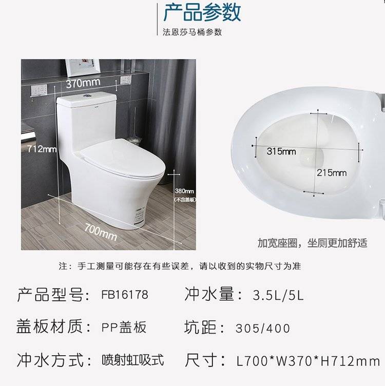 法恩莎卫浴 马桶家用节水座便器喷射虹吸式连体防臭坐便器FB16178