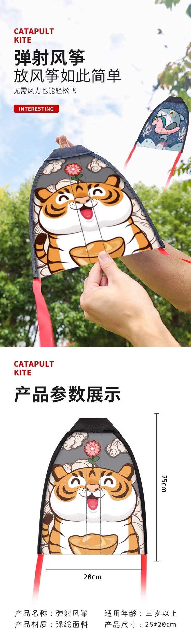 弹射风筝儿童户外玩具 手持发射滑行小风筝无风也能飞得远