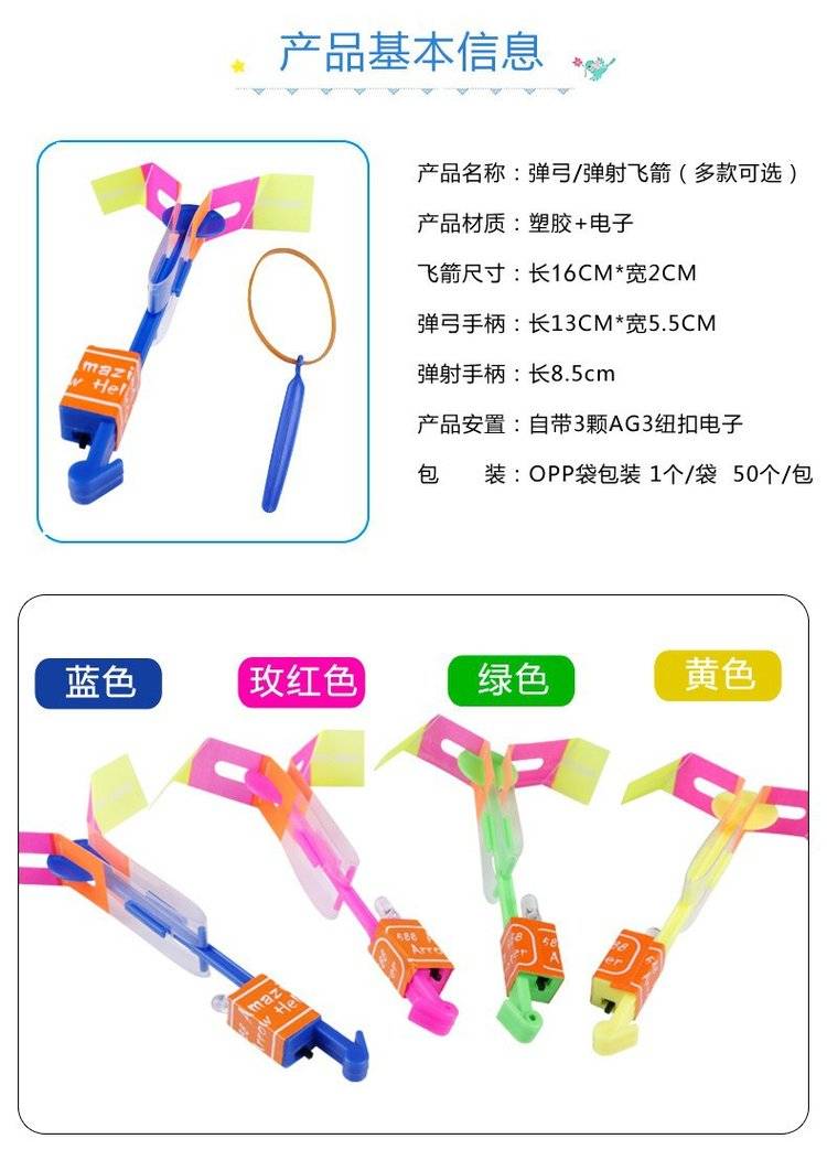 将飞箭的亮片叶子折成螺旋状,左手捏住飞箭圆柄,右手拉紧发射器,左手松开,飞箭即可飞出