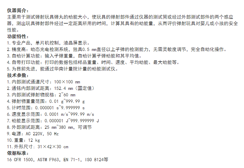 ASTM F963EN71-1 玩具弹射物动能测试仪 试验机 台塑