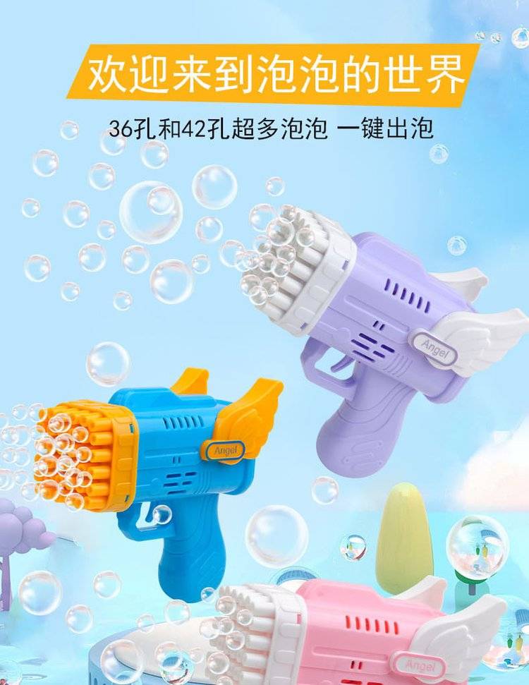 网红42孔天使泡泡机 儿童手持电动吹泡泡枪 户外吹泡泡玩具地摊批发