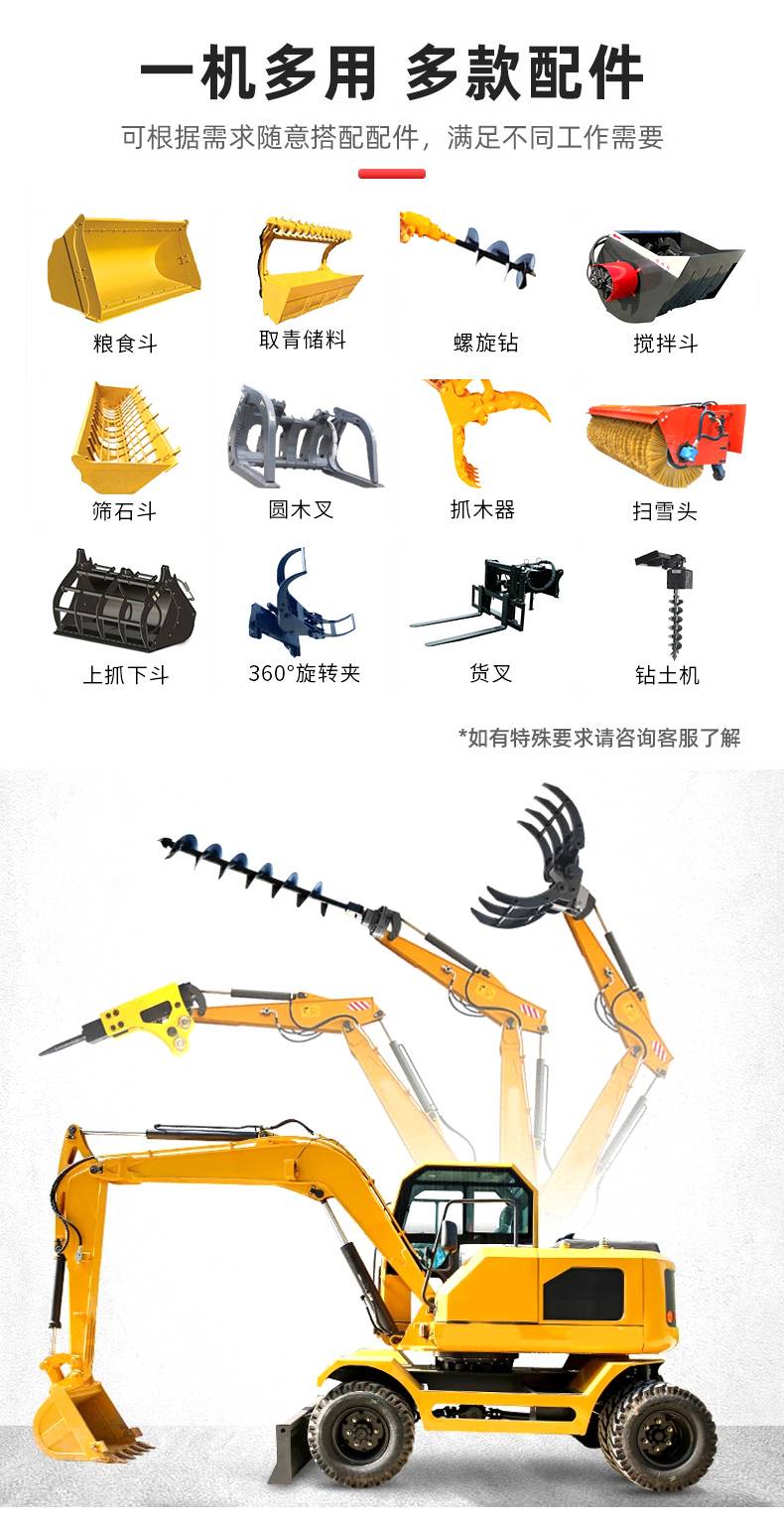 40加长臂小轮挖 微型轮式挖掘机 工程挖土山地破碎抓木机