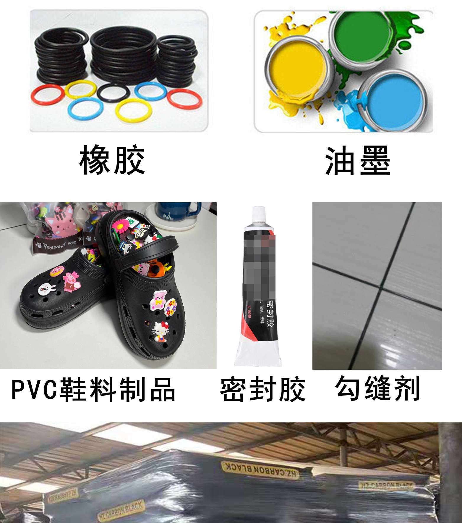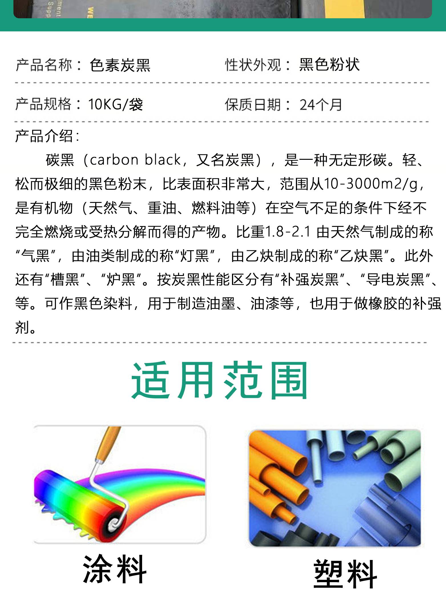 建材水泥彩砖、油墨,橡胶,造纸,导电材料等