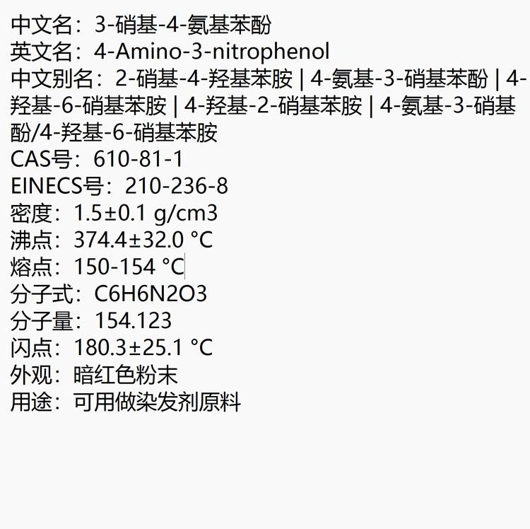 22223-硝基-4-氨基苯酚 610-81-1 用作棉麻粘胶纤维织物头发染色剂