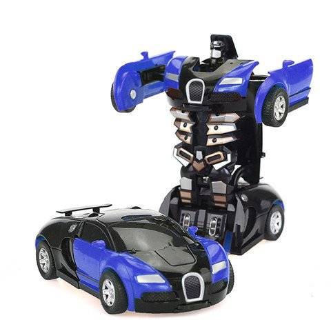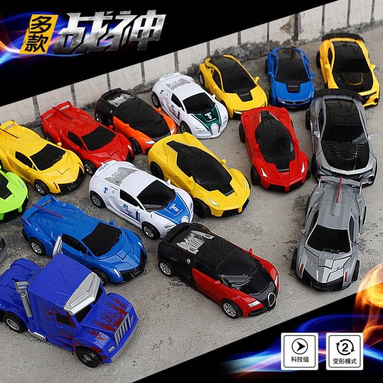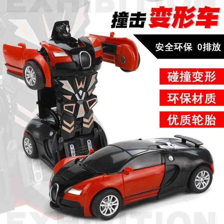 儿童一键撞击变形车布加迪机器人汽车人惯性回力跑车男孩女孩玩具
