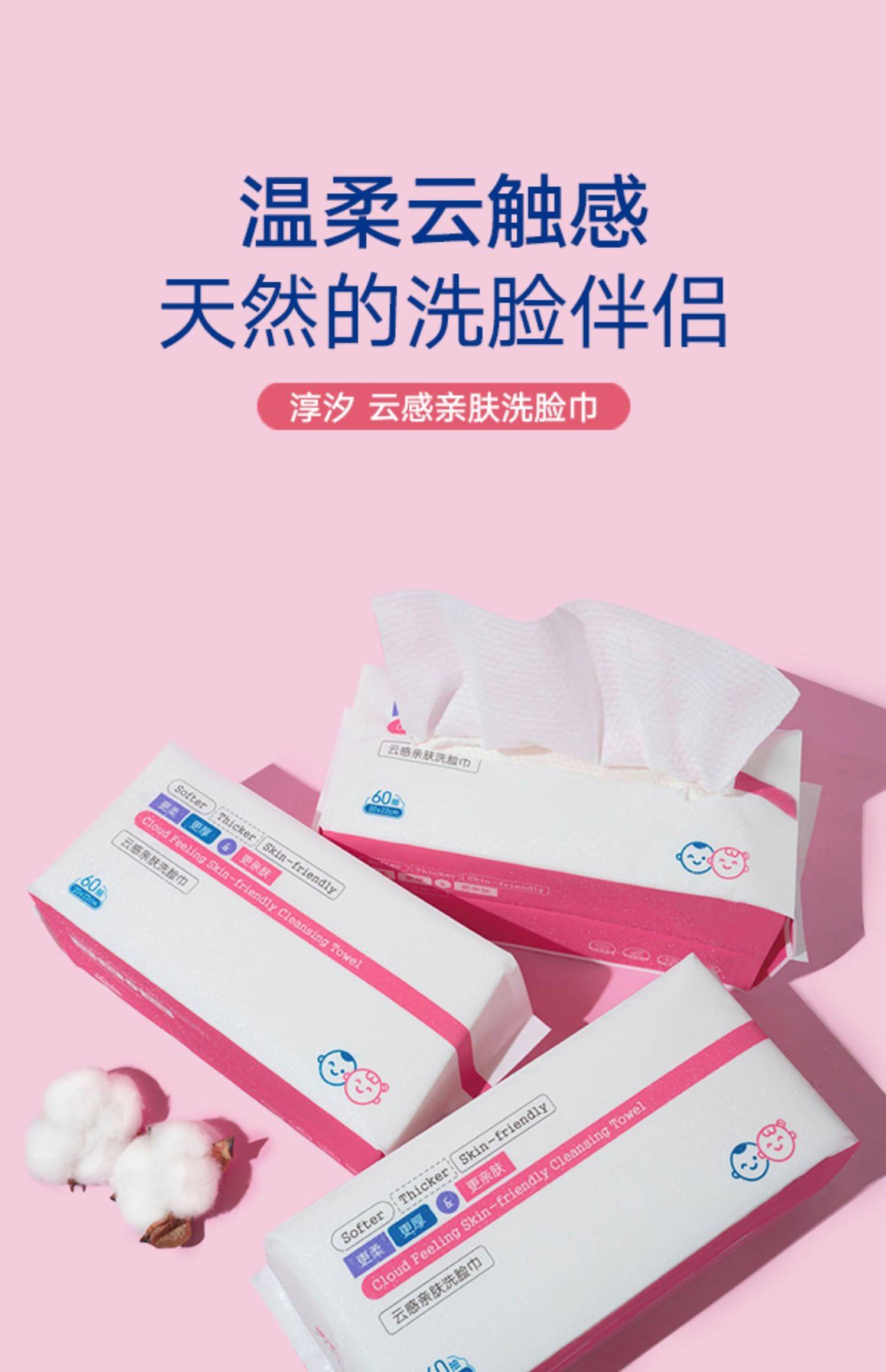 新款淳汐云感亲肤洗脸巾 60抽一次性洁面巾 干湿两用柔韧不掉絮