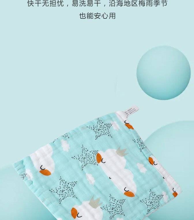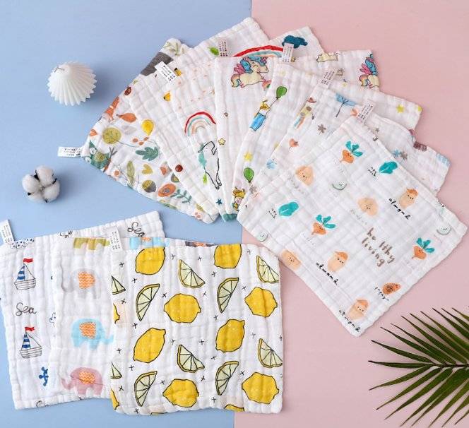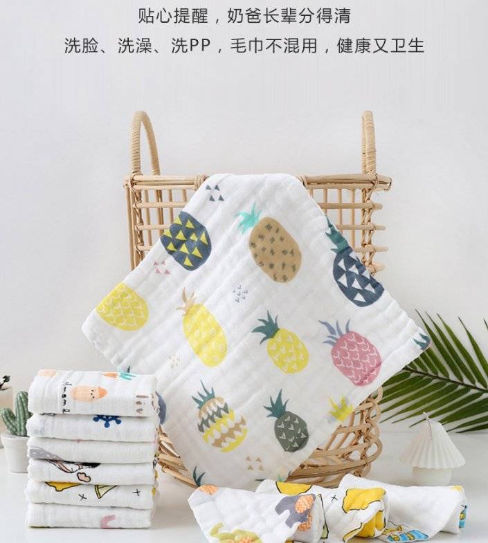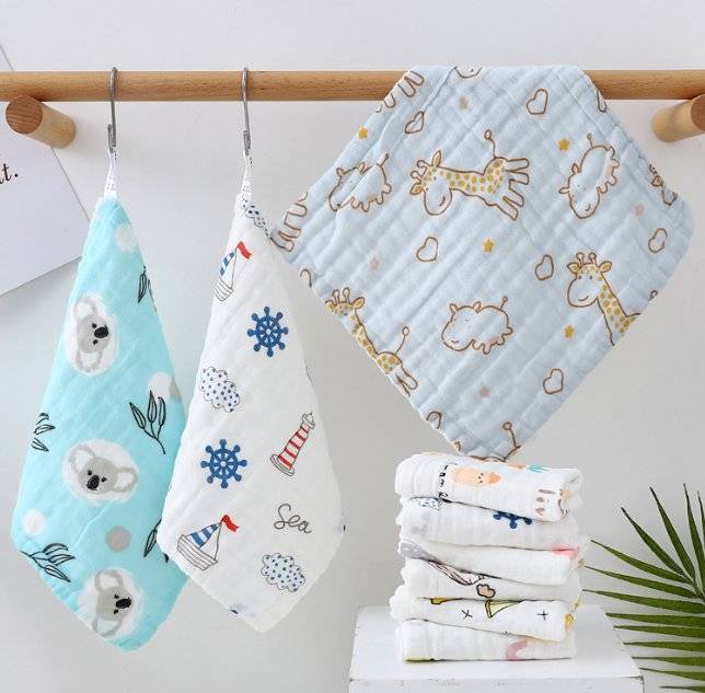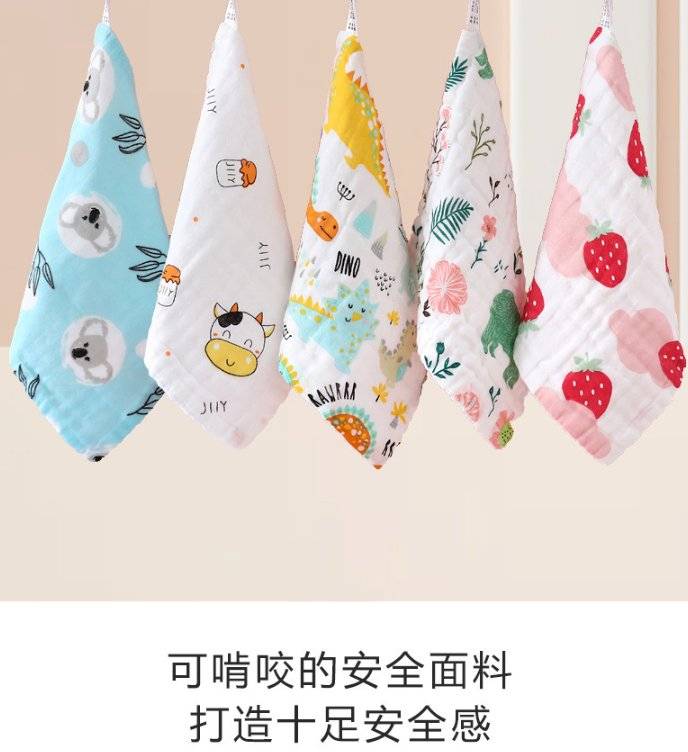 婴儿方巾全棉口水巾六层小毛巾印花洗脸巾高密纱布童巾儿童