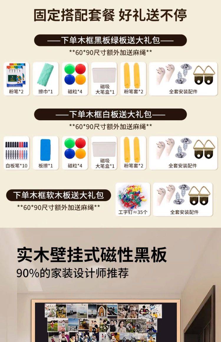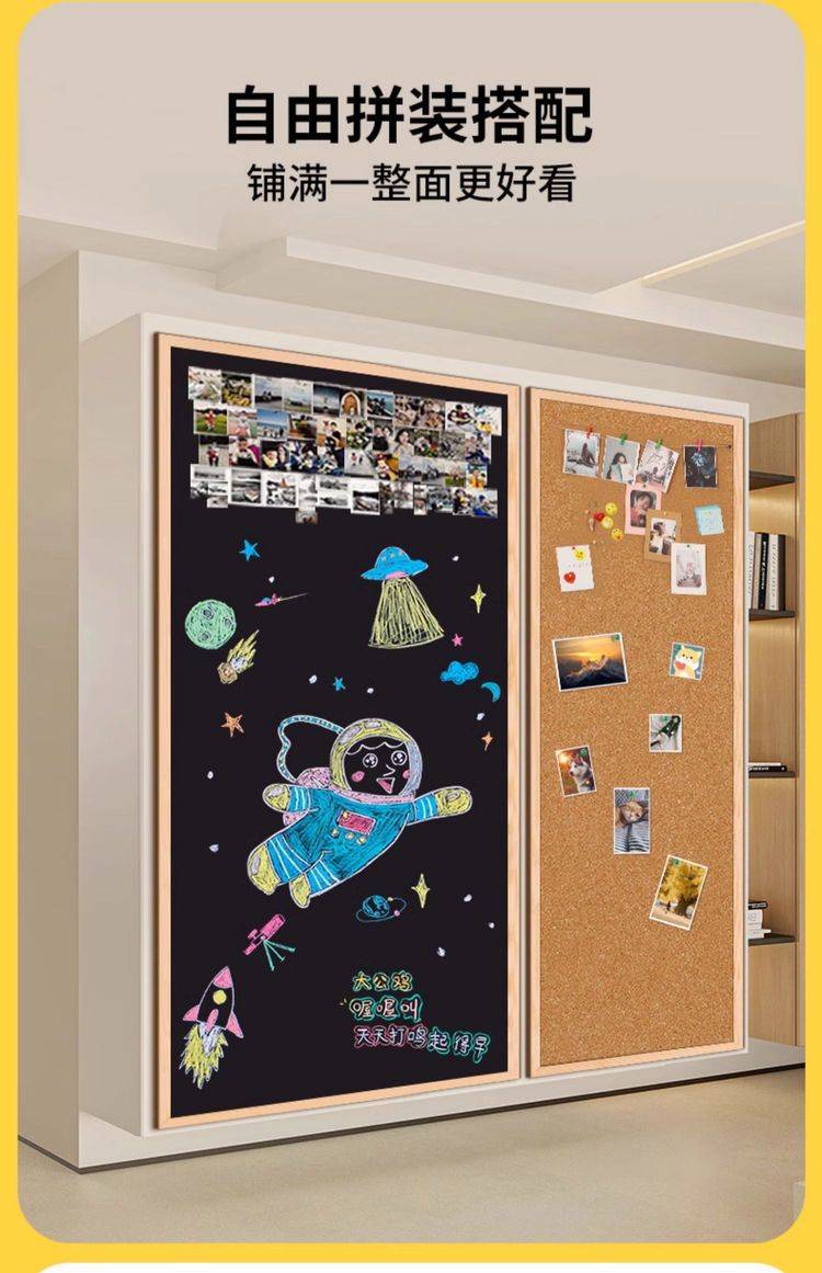 松木框软木板白板组合板照片墙板图钉毛毡墙贴 磁性黑板留言板