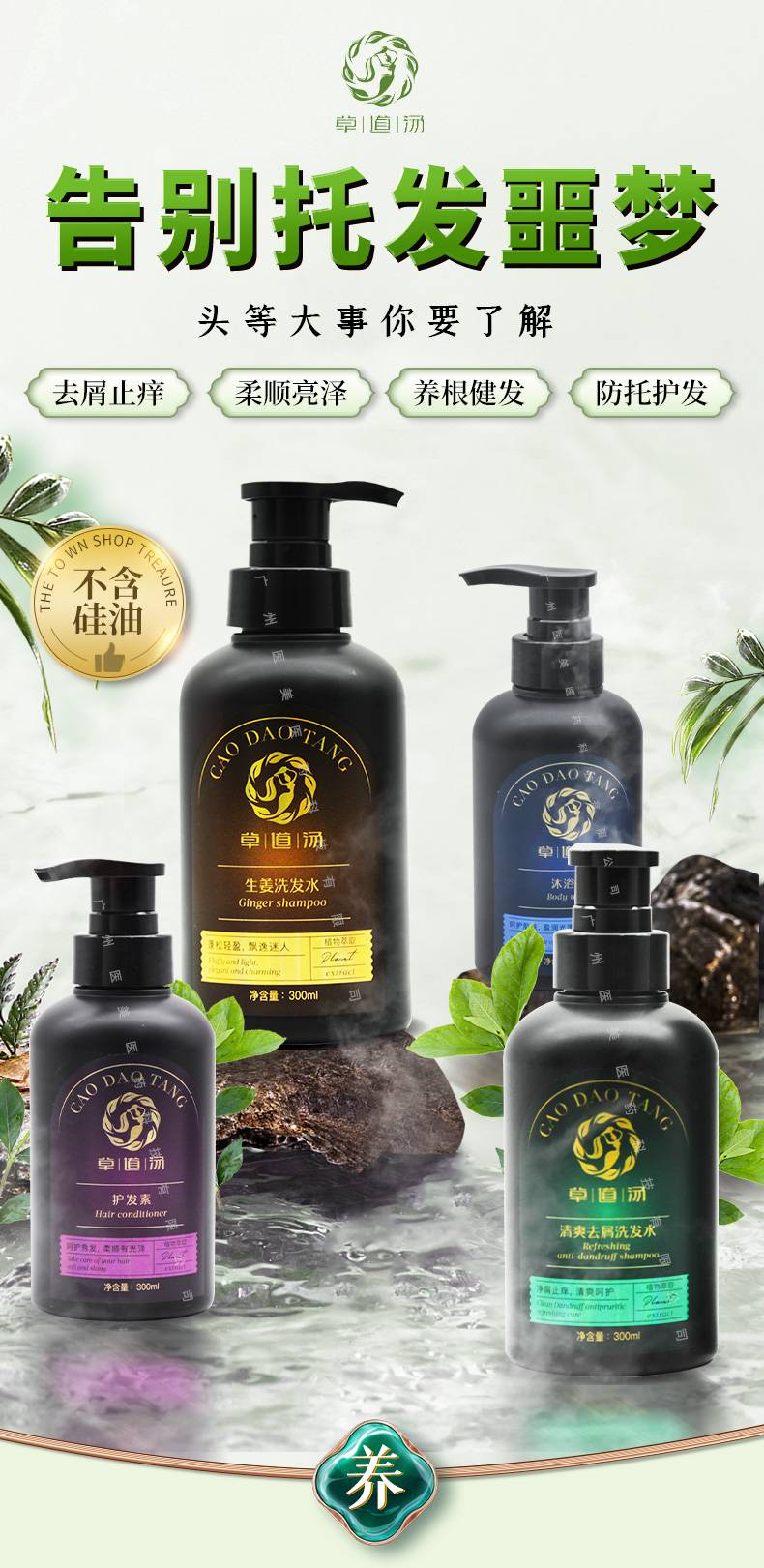 草道汤生姜洗发水清爽控油去屑洗发露止痒洗头膏洗发护发套装代发