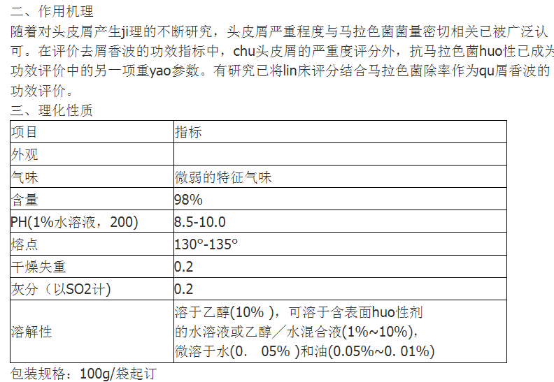 主要功能去屑止yang剂。