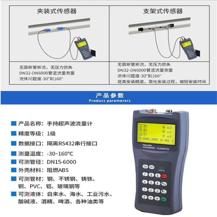 便携手持式超声波流量计非接触式流量测量仪表