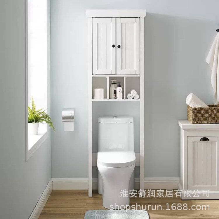 批发浴室卫浴收纳架卫生间落地式马桶上方置物架白色板式洗衣机架